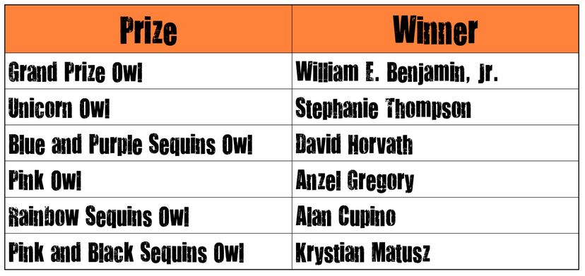 The grand prize winners of these cute critters were randomly selected (using SAS of course). Congratulations